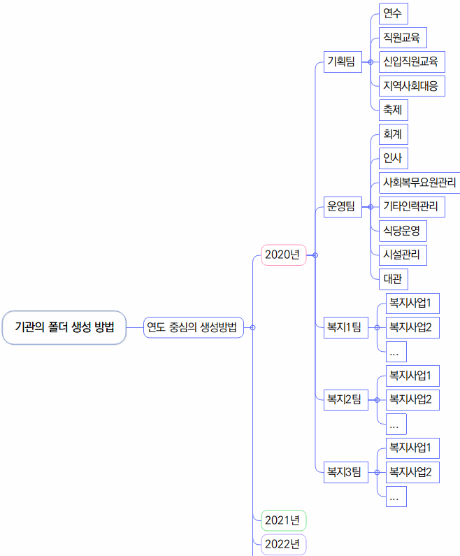 이렇게 하면 해당 연도의 팀별 업무를 모을 수 있으니 폴더 접근이 쉽고, 수월하겠다는 생각이 들지만,